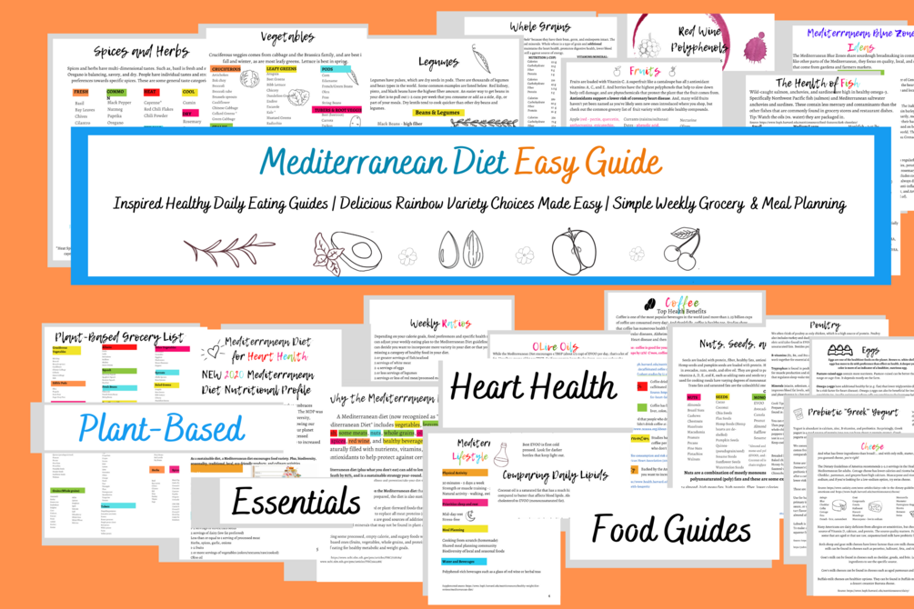 ✅Mediterranean Diet food knowledge guides (based on health research) and lists for grocery and meal planning